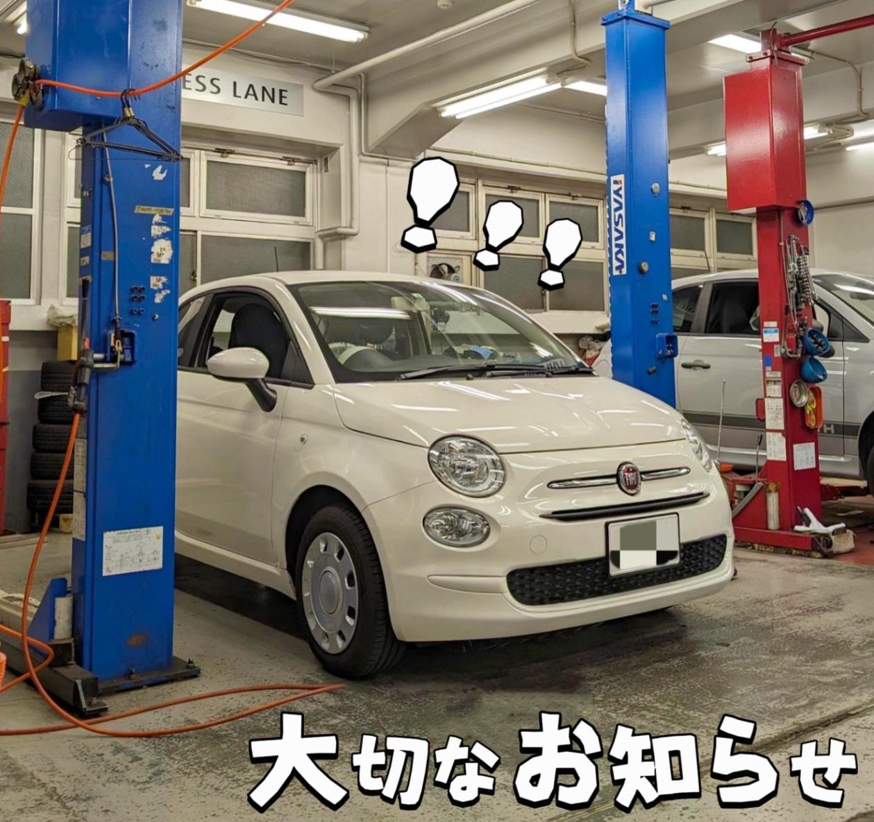 みなさま、こんにちは。 フィアット、アバルト全てのお車に対し 丁寧、正確、迅速なサービスを心がけております。 車検や点検、何でもご相談くださいませ。みなさまのご来店を心よりおまちしております。